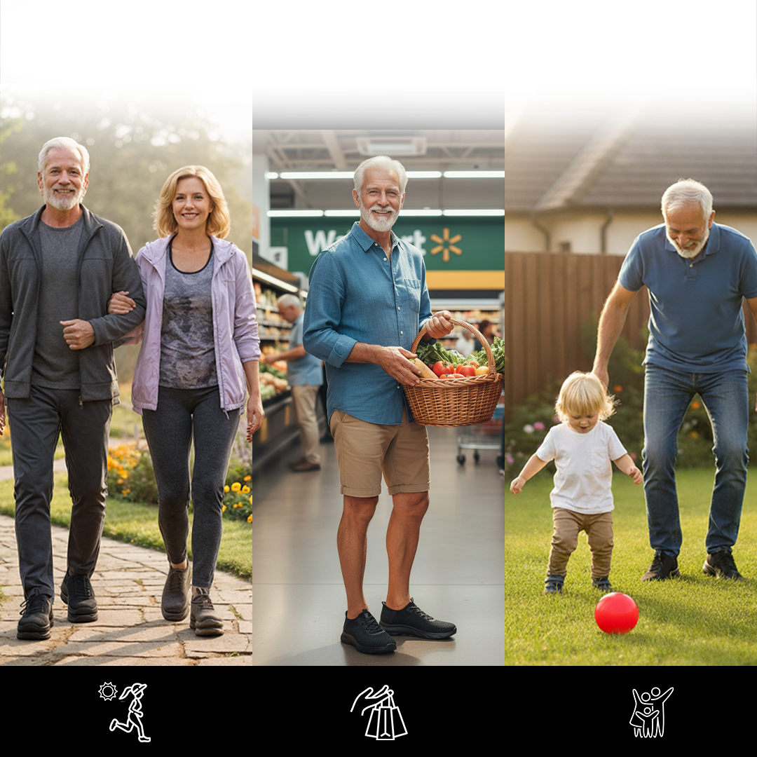 Your life doesn't stop—neither should your shoes. Morning walks. Running errands. Playing with grandkids. GLEASE handles it all. No more choosing between easy shoes that aren't safe and supportive shoes that are a struggle. GLEASE is both.