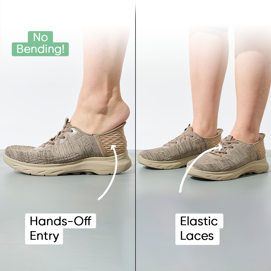 You've heard "easy on" before—then still needed to wrestle the heel up. Not with GLEASE. Watch the proof: hands-off entry. The heel stays open. Elastic laces mean zero tying. Just step down and go. It actually works as promised.