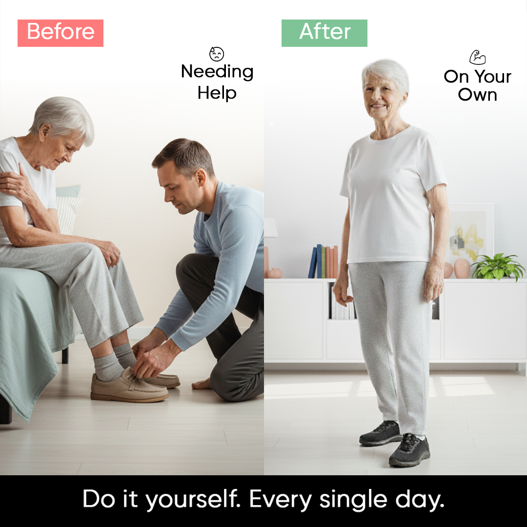 The first time you ask for help putting on shoes changes everything. The embarrassment. The loss of control. GLEASE gives you independence back. Get dressed on your own. Walk out on your schedule. Live without needing help with basic tasks. Independence isn't just what you can do—it's how you feel.